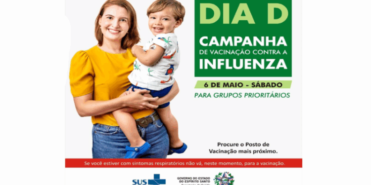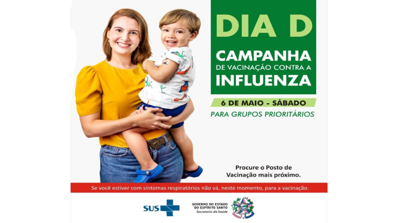 Neste sábado (06), o Espírito Santo estará empenhado em prol da vacinação contra a Influenza. A data marca o dia D de mobilização, com vacinas disponíveis aos públicos prioritários em 62 municípios capixabas, com a expectativa de 68 mil pessoas imunizadas. A data é uma iniciativa da Secretaria da Saúde (Sesa), aprovada em Resolução Nº 039/2023, da Comissão Intergestora Bipartite (CIB).