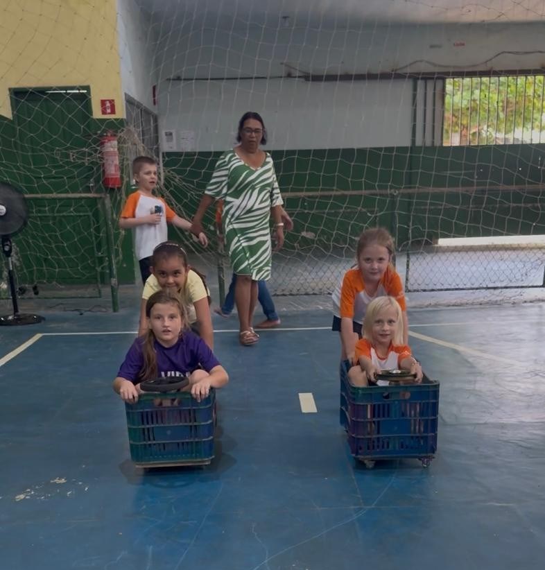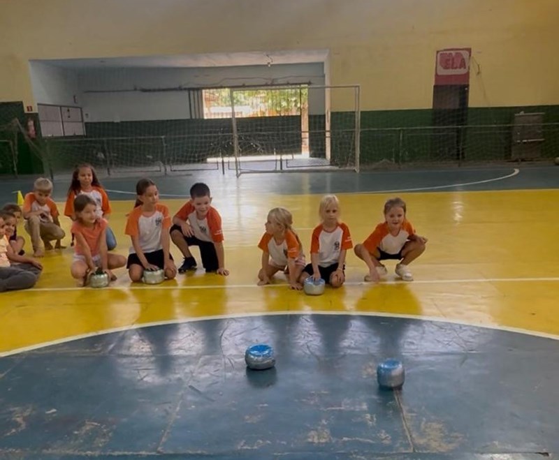 Na sequência, os estudantes foram desafiados a transformar o conhecimento teórico em experiência prática, participando da construção de versões adaptadas de alguns esportes de inverno utilizando materiais acessíveis. Entre as modalidades trabalhadas estiveram o Curling, que envolve estratégia, precisão e trabalho em equipe, e o Bobsled, inspirado nas corridas de trenó no gelo.
