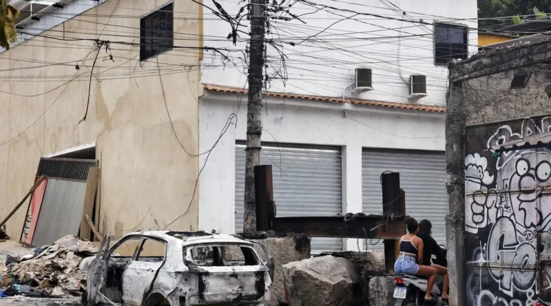 Rio de Janeiro (RJ), 30/10/2025 – Pessoas passam em moto na praça da Vila Cruzeiro ao lado de barricadas que foram colocadas para conter avanço de policiais durante a Operação Contenção. Foto: Tânia Rêgo/Agência Brasil