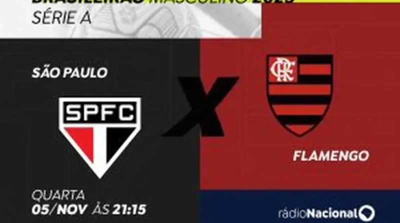 São Paulo- 03/11/2025 - Rádio Nacional acompanha São Paulo e Flamengo ao vivo nesta quarta. Arte/ Rádio Nacional