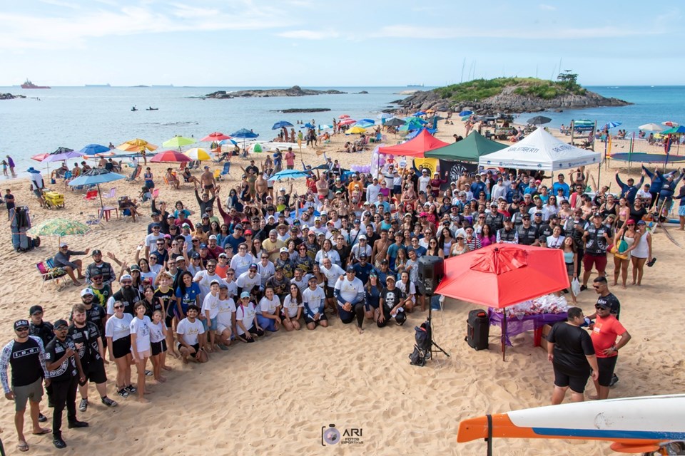 A remada com canoas havaianas solidária aconteceu na Praia da Sereia, em Vila Velha, e contou com o apoio da HIP VA’A e os Insanos Regional Espírito Santo Sul.
